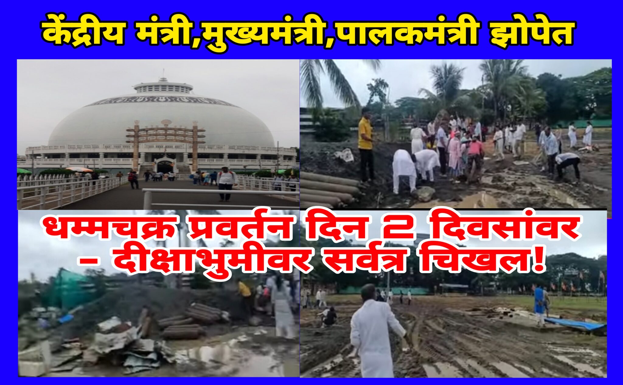 महामानव डॉ. बाबासाहेब आंबेडकर यांनी 14 आँक्टोबर 1956 रोजी नागपुरच्या पवित्र दीक्षाभुमीवर आपल्या 5 लाख अनुयायांना बौद्ध धर्माची दीक्षा देऊन जगातील सर्वात मोठी ऐतिहासिक धम्मक्रांती केली! त्या दीक्षाभुमीवर मनुवादी शासनाने मागच्या वर्षी अंडरग्राऊंड पार्किंग च्या नावाखाली अवैध खोदकाम केले आंबेडकरी जनतेला अंधारात ठेवून विकासकामांच्या नावाखाली आपली आर्थिक दुकानदारी चालवण्यासाठी महाराष्ट्र शासनाने दीक्षाभुमी विकास करण्याऐवजी बट्ट्याबोळ केला. आंबेडकरु जनतेने अंडरग्राऊंड पार्किंग ला विरोध केला तै काम बंद पाडले डॉ. आंबेडकर स्मारक समितीच्या निष्क्रिय संधीसाधू पदाधिकारी यांना याचा जाब विचारला? दीक्षाभुमी परिसरातील खड्डे बुजविण्यात आले परंतु त्यासाठी घाण माती या परिसरात टाकली डस्टच्या नावाखाली. या ठिकाणी ठिकठिकाणी वाढलेले गवत सुद्धा आंबेडकरी अनुयायांनी स्वतः एकत्र येत कापले. परंतु येथील नागपुर चे जिल्हाधिकारी, पालकमंत्री व मुख्यमंत्री यांनी दीक्षाभुमी वर 69 व्या धम्मचक्र प्रवर्तन दिना च्या निमित्ताने फक्त मिटिंग घेतल्या. नागपूर DPDC, नागपूर मनपा यांनी अजुनही येथील जागा मागील 7-8 महिन्यात समतल केली नाही. आता सततच्या पावसामुळे दीक्षाभुमी परिसरात सर्वत्र चिखलाचे साम्राज्य झाले आहे.