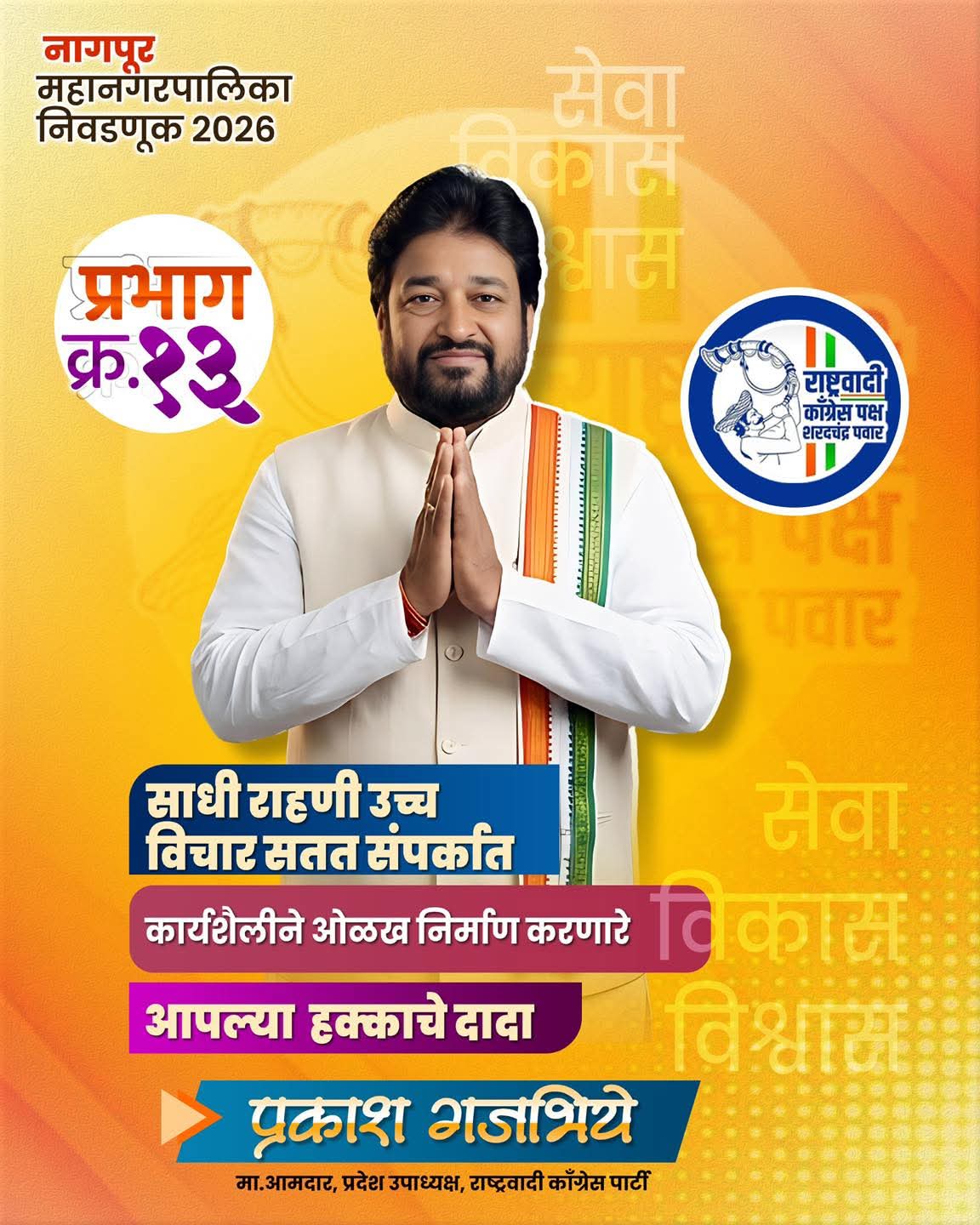 प्रत्येक नगरसेवकाला आमदार व्हायचे असते. नागपुरातील कित्येक नगरसेवक हे आमदार, मुख्यमंत्री, उपमुख्यमंत्री, खासदार ही बनले. परंतु नागपूरमध्ये राष्ट्रवादी काँग्रेस च्या एका आमदाराने अगदी उलट राजकीय प्रवास सुरू केला आहे. शरदचंद्र पवार यांच्या राष्ट्रवादी काँग्रेसचे माजी आमदार प्रकाश गजभिये यांनी नगरपालिकेच्या निवडणुकीसाठी उमेदवारी दाखल केली आहे. त्यांनी आपल्या परंपरागत पांढराबोडी परिसराचा समावेश असलेल्या प्रभाग क्रमांक 13 मधून लढण्याचा निर्णय घेतला आहे.तसे बघता मुख्यमंत्री बनल्यावर कोणी उपमुख्यमंत्री बनत नाही तो प्रधानमंत्री बनण्याचे स्वप्न बघतो. पण राजकारणात काहीही घडते. मुख्यमंत्री बनलेले देवेंद्र फडणवीस व एकनाथ शिंदे हे उपमुख्यमंत्री बनलेत. त्यामुळे राजकारणात कधी काय घडेल याचा नेम नाही. तसे बघता सर्वच राजकीय पक्षांचे मोठे नेते यांच्यासोबत माजी आमदार प्रकाश गजभिये यांचे घनिष्ठ संबंध राहिलेले आहेत. भाजप चे नितीन गडकरी, देवेंद्र फडणवीस, रिपाइ चे रामदास आठवले, वंचित चे बाळासाहेब आंबेडकर, राष्ट्रवादी काँग्रेसचे शरद पवार, अजित पवार पासुन तर कांग्रेस चे विकास ठाकरे या सर्व राजकीय नेत्यांसोबत अगदी जवळचे संबंध माजी आमदार प्रकाश गजभिये यांचे राहिलेले जनतेने बघितले आहे.