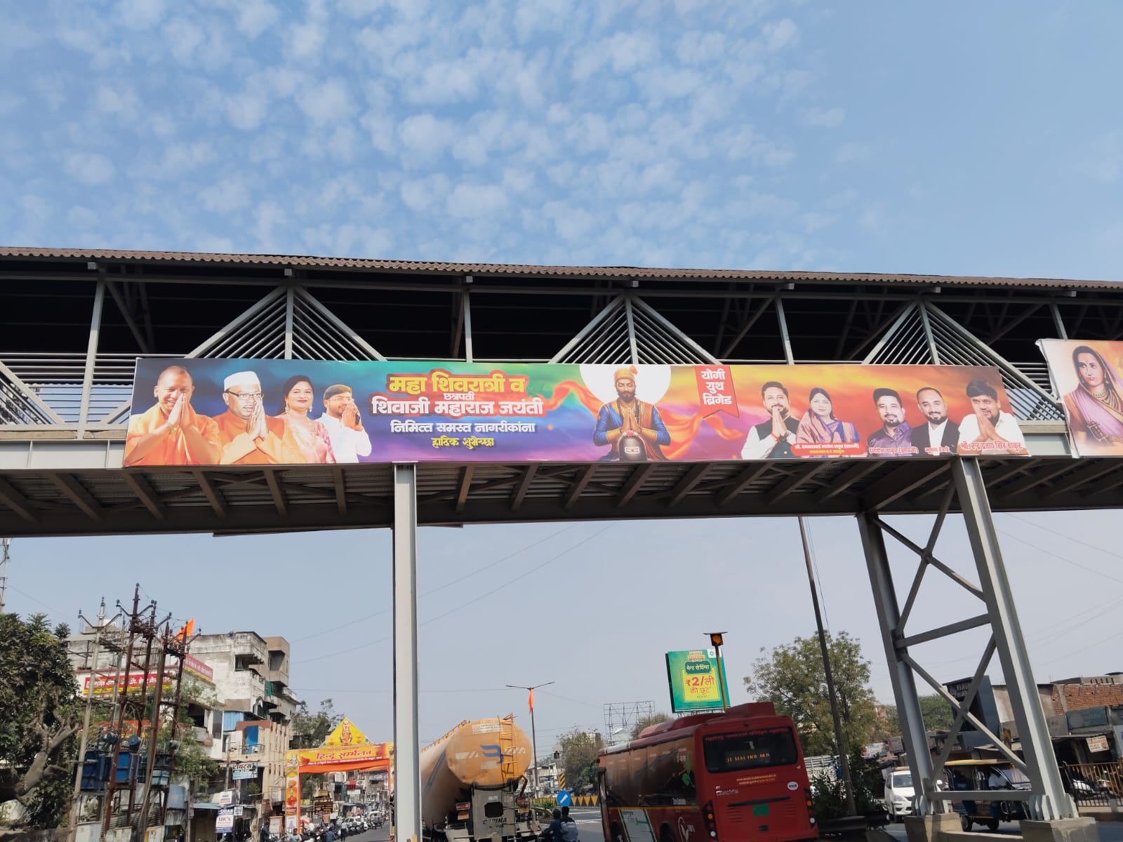 नागपुर जिले के पालकमंत्री चंद्रशेखर बावनकुळे के ग्रृहक्षेत्र महादुला कोराडी मे 19 फरवरी 2026 छत्रपती शिवाजी महाराज के जयंती के उपलक्ष्य में राष्ट्रीय महामार्ग पर बने फुट ओवर ब्रिज (FOB). पर बडे बडे बैनर लगाए जा चुके है। लेकिन उन बैनर से भाजपा के केंद्रीय सडक, परिवहन मंत्री नितीन गडकरी तथा महाराष्ट्र के मुख्यमंत्री देवेंद्र फडणवीस का फोटो ही गायब है।